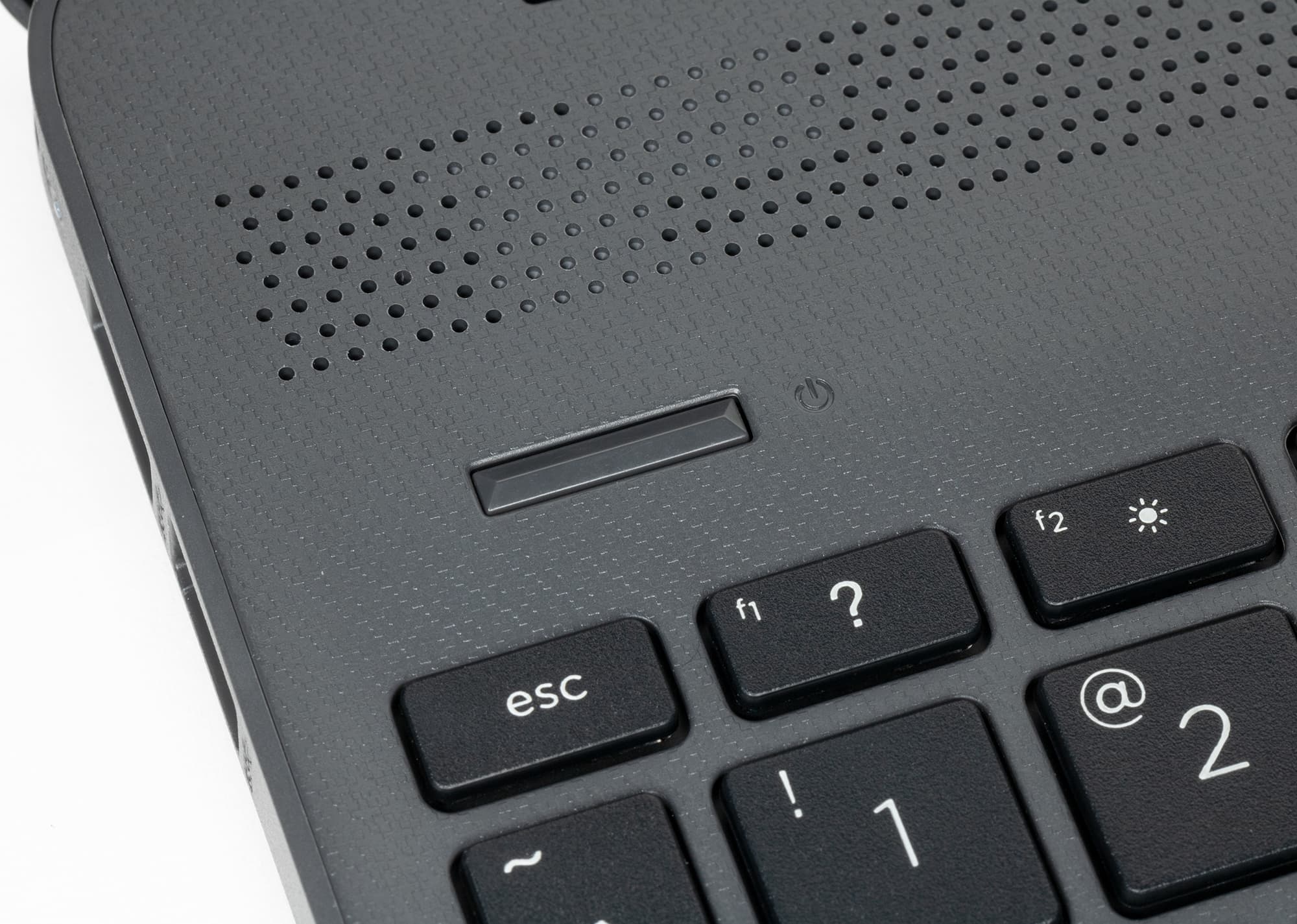 Кнопка Power находится слева вне области с клавишами, что исключает ошибочные нажатия при печати. Сама по себе она узкая и вытянутая, с заметным усилием срабатывания, поэтому в любом случае случайное выключение ноутбука будет маловероятным.