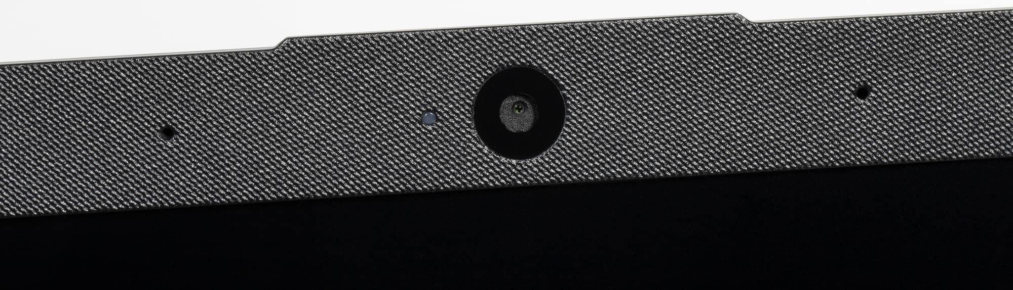 Ширина рамки вокруг экрана по бокам составляет 6 мм, вверху — 13,5 мм (там расположены веб-камера с обычным для ноутбуков качеством изображения 720p, а также отверстия для микрофонов), внизу 19 мм до выступа с петлями; значения вполне средние, особо тонкой рамку не назовешь. Имеются резиновые амортизирующие вставки.