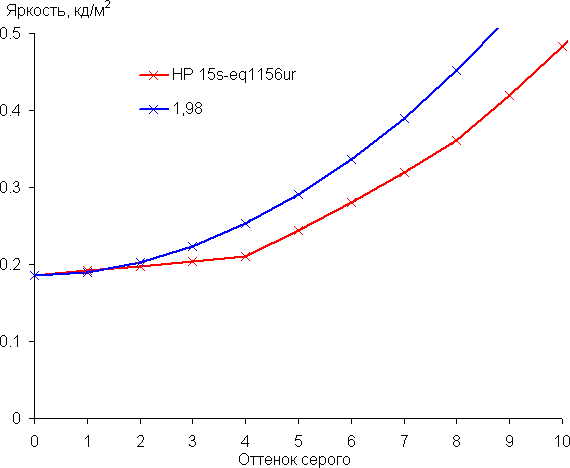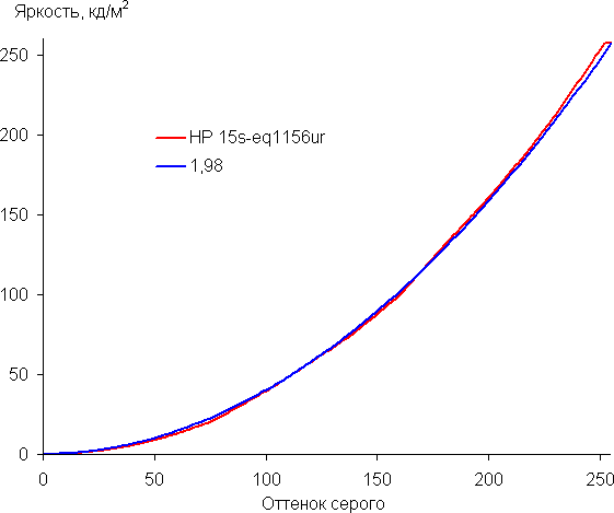 Аппроксимация полученной гамма-кривой дала показатель 1,98, что ниже стандартного значения 2,2, поэтому картинка чуть высветлена. При этом реальная гамма-кривая заметно отклоняется от аппроксимирующей степенной функции: