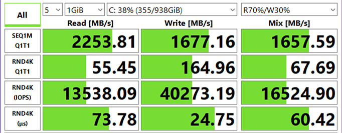 Можете сравнить с результатами более производительного накопителя Kioxia KXG60ZNV1T02, который тестировался в ноутбуке Dell XPS 13 9310: