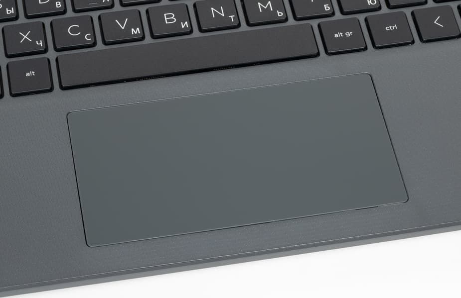 Тачпад размером 115×60 мм расположен традиционно — перед клавиатурой, и слегка заглублен. Выделенных клавиш у него нет, однако левая и правая ближние части тачпада вполне могут работать как соответствующие кнопки мыши, при этом чрезмерного усилия для нажатия прилагать не приходится. Сенсорная площадка поддерживает и жесты, а нажатия можно выполнять практически по всей ее площади.