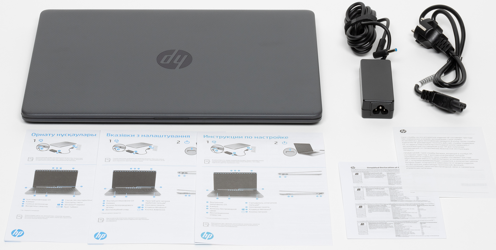 В комплекте только сам ноутбук, адаптер питания с сетевым шнуром и несколько бумажных носителей с информацией.