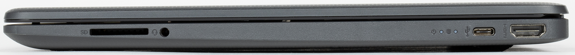 Комбинированный разъем для аудиогарнитуры и прорезь SD-картовода также находятся справа, но ближе к передней кромке.
