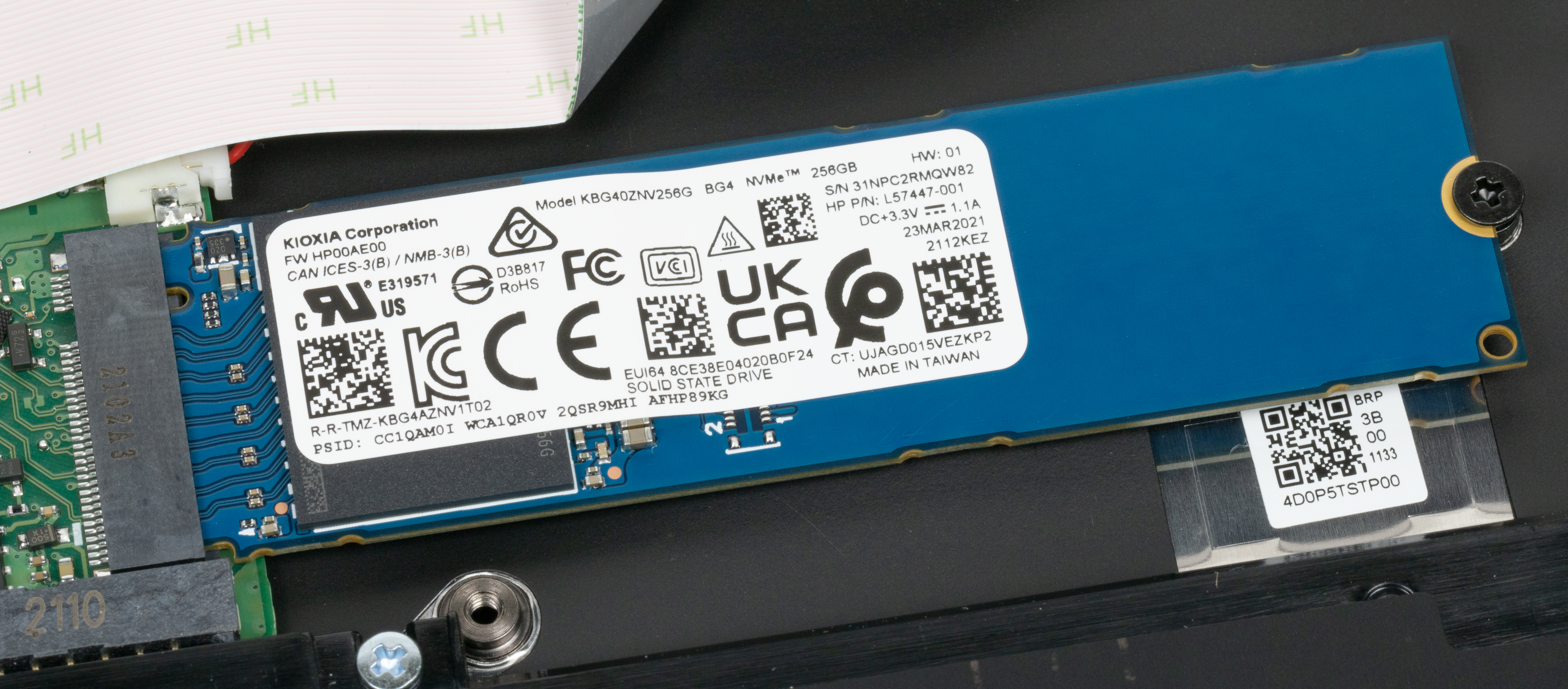 | Накопитель | 1 × SSD 256 ГБ (Kioxia KBG40ZNV256G, M.2, NVMe, PCIe 3.0 x4) | |