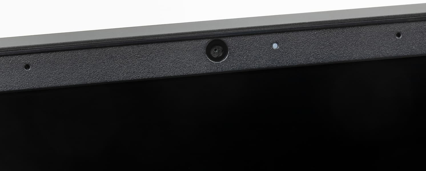 Рамка вокруг экрана по современным меркам далеко не тонкая (7 мм слева и справа, 11 мм сверху, 36 мм снизу до рабочей поверхности). В верхней части рамки расположена веб-камера с сигнальным светодиодом и двумя микрофонами. Аппаратной защиты от включения камеры нет, быстро включить и отключить ее сочетанием клавиш тоже нельзя. А вот качество съемки на удивление не настолько плохое, насколько мы привыкли: шумов в затемненном помещении явно меньше, камера оперативно реагирует на повороты и наклоны головы пользователя, не тормозит. Правда, есть нюанс: камера гораздо более широкоугольная, чем обычно, и чтобы лицо пользователя заняло ожидаемую площадь кадра, приходится нагибаться аж над клавиатурой. Соответственно, если использовать камеру в привычном режиме, то лицо в кадре будет небольшого размера. Для авторизации по лицу в рамках Windows Hello камера не подходит.