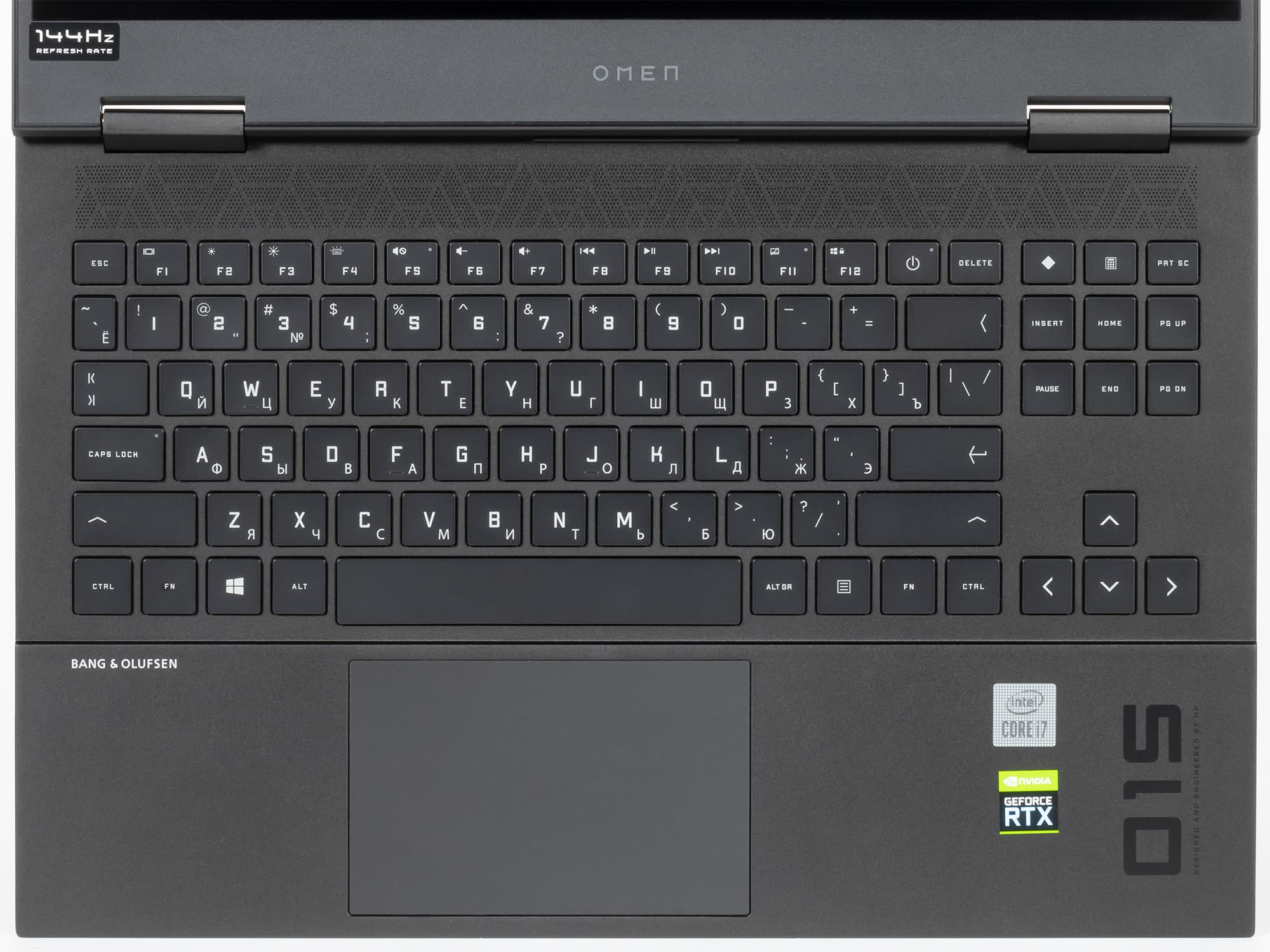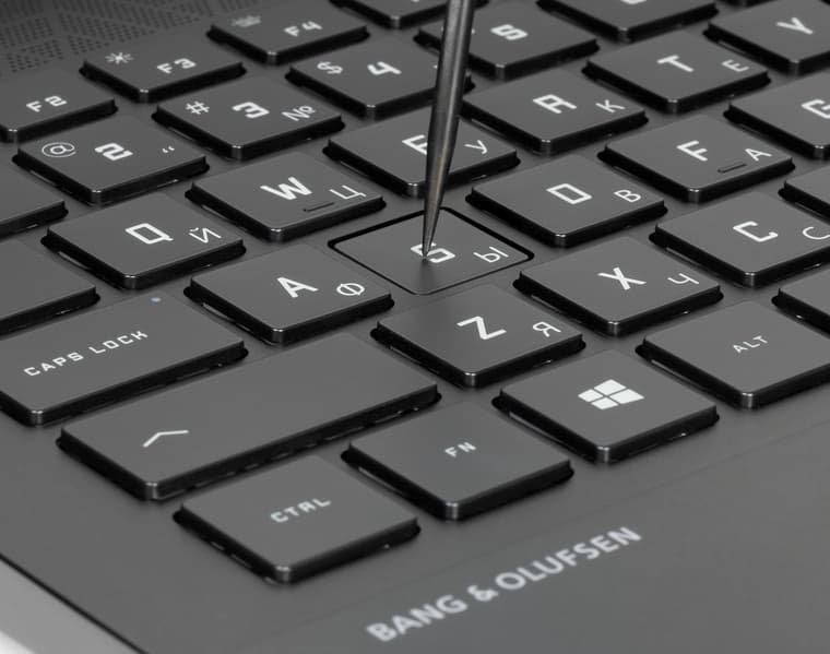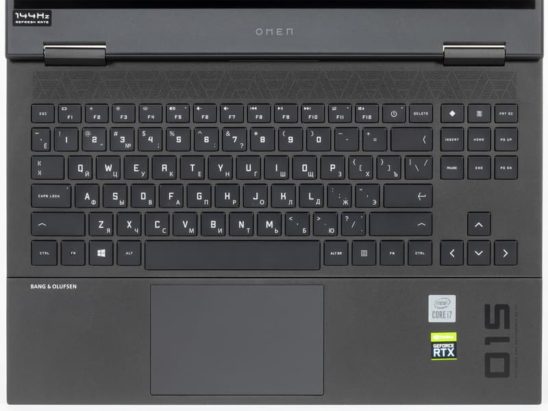 Практически все остальное, что можно сказать про раскладку, тоже будет комплиментарным. Здесь применено много удачных решений: в частности, правый Alt на самом деле AltGr, а клавиш Fn две, так что всегда будет удобно использовать аккорды. Правда, внезапно выясняется, что тут и аккорды-то практически не нужны, поскольку всё необходимое и так доступно. В результате с Fn нажимаются только клавиши верхнего ряда, туда вынесены традиционные управление яркостью экрана, громкостью, подсветкой клавиатуры и воспроизведением в плеере, можно быстро отключить звук, тачпад и клавишу Win, причем после этого в кнопке загорается маленький светодиодный индикатор. Очень удобно. Кстати, функцию клавиш верхнего ряда можно поменять в BIOS Setup, тогда, наоборот, с Fn будут вводиться F1—F12. В дополнительном верхнем ряду справа есть кнопки для запуска фирменной утилиты Omen Gaming Hub и калькулятора.