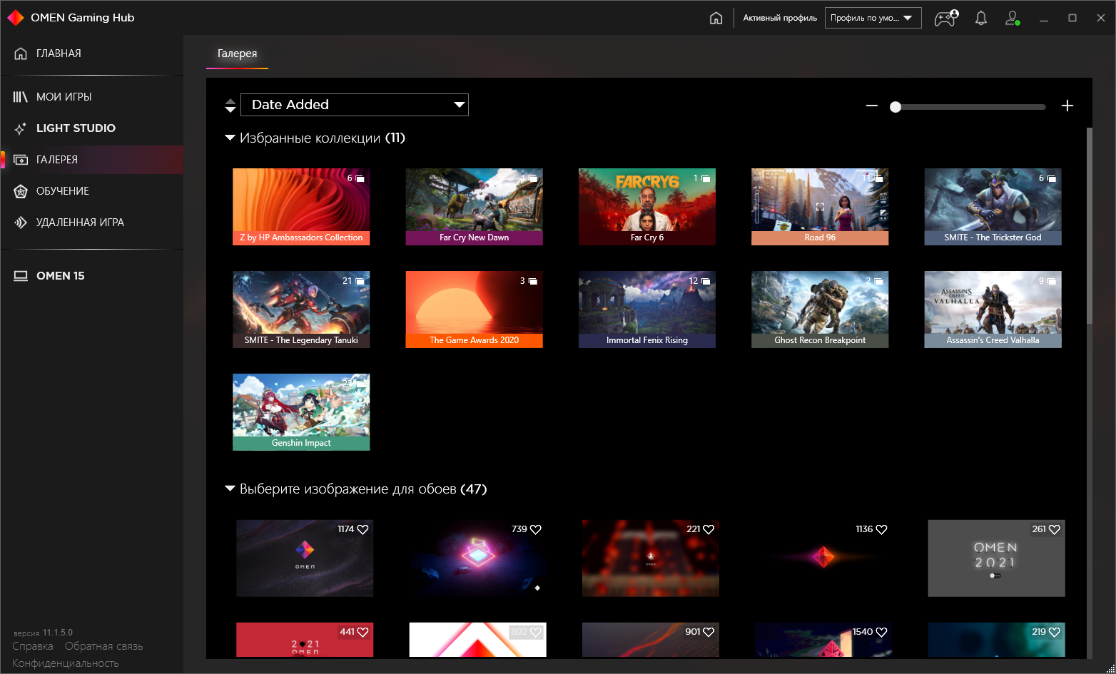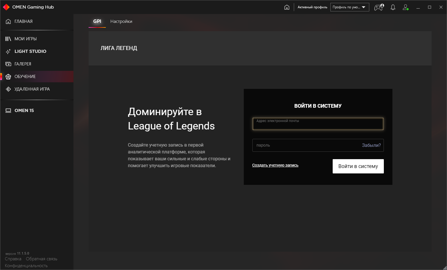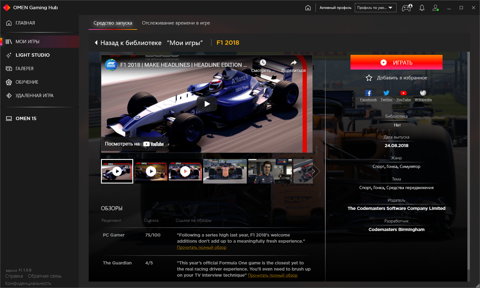 Правда, функциональность, которая заявлена главной для этой утилиты и перечислена в пунктах основного меню, вызывает сомнение. Библиотека игр — это всего лишь список установленных на компьютере игр с информацией о них (год выхода, жанр, трейлеры, скриншоты) и сбор статистики о времени, потраченном на ту или иную игру. Галерея — набор тематических обоев: из игр или в стилистике Omen. Обучение — хм, здесь реально предлагают зарегистрироваться и пройти обучение, чтобы нагибать в ЛоЛе. Удаленная игра — настройка трансляции игрового процесса на другое устройство в локальной сети.