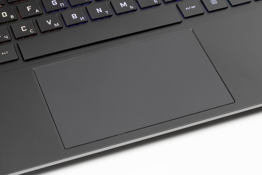 В традиционном месте перед клавиатурой расположен сравнительно большой заглубленный кликпад размером 116×74 мм, который легко позволяет использовать любые стандартные жесты, включая горизонтальное смахивание четырьмя пальцами. У него нет выделенных клавиш, но сенсорная площадка поддерживает нажатия — у самого дальнего края тачпад почти не нажимается, но в остальной части нажатия более-менее равномерные. Таким образом, никаких претензий к тачпаду нет, он вполне удобный.