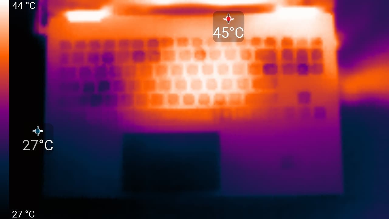 От 40 дБА и выше шум, с нашей точки зрения, очень высокий, долговременная работа за ноутбуком затруднительна, от 35 до 40 дБА уровень шума высокий, но терпимый, от 30 до 35 дБА шум отчетливо слышно, от 25 до 30 дБА шум от системы охлаждения не будет сильно выделяться на фоне типичных звуков, окружающих пользователя в офисе с несколькими сотрудниками и работающими компьютерами, где-то от 20 до 25 дБА ноутбук можно назвать очень тихим, ниже 20 дБА — условно бесшумным. Шкала, конечно, очень условная и не учитывает индивидуальных особенностей пользователя и характер звука.