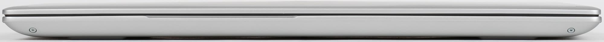 Спереди не выведено никаких разъемов и кнопок. Есть только небольшое углубление для более удобного открытия верхней панели с дисплеем.