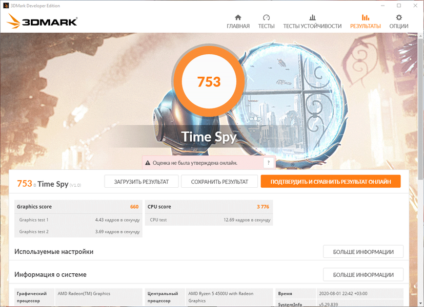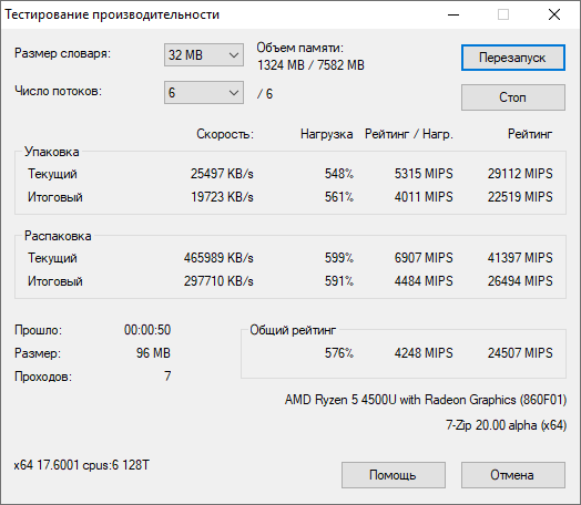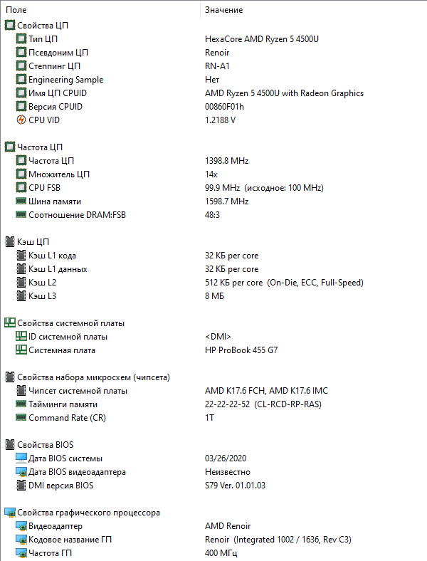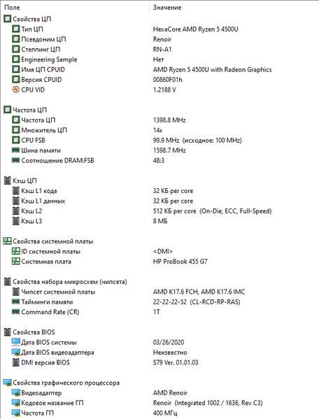 | Тест | Референсный результат | HP ProBook 455 G7 (AMD Ryzen 5 4500U) |