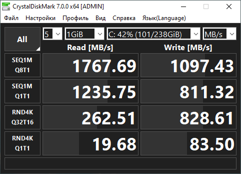 | Скорость копирования данных, c | 42,62 | 20,42 |