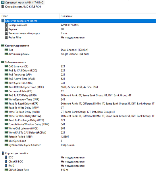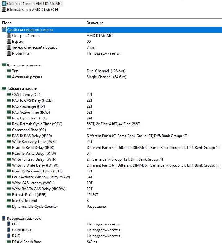 | Оперативная память | 8 ГБ DDR4-3200 (модуль SO-DIMM Micron MTA8ATF1G64HZ-3G2J1 в одноканальном режиме, тайминги 22-22-22-52 CR1) | |