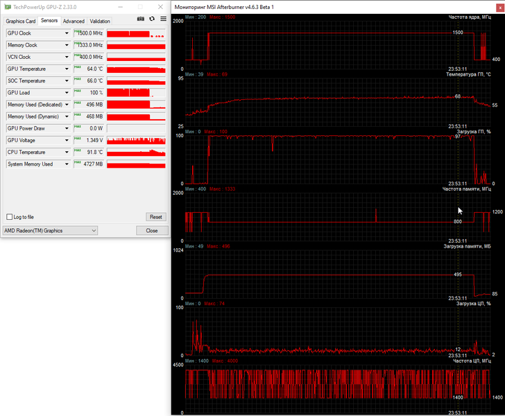 Для мониторинга использовались утилиты GPU-Z и MSI Afterburner.