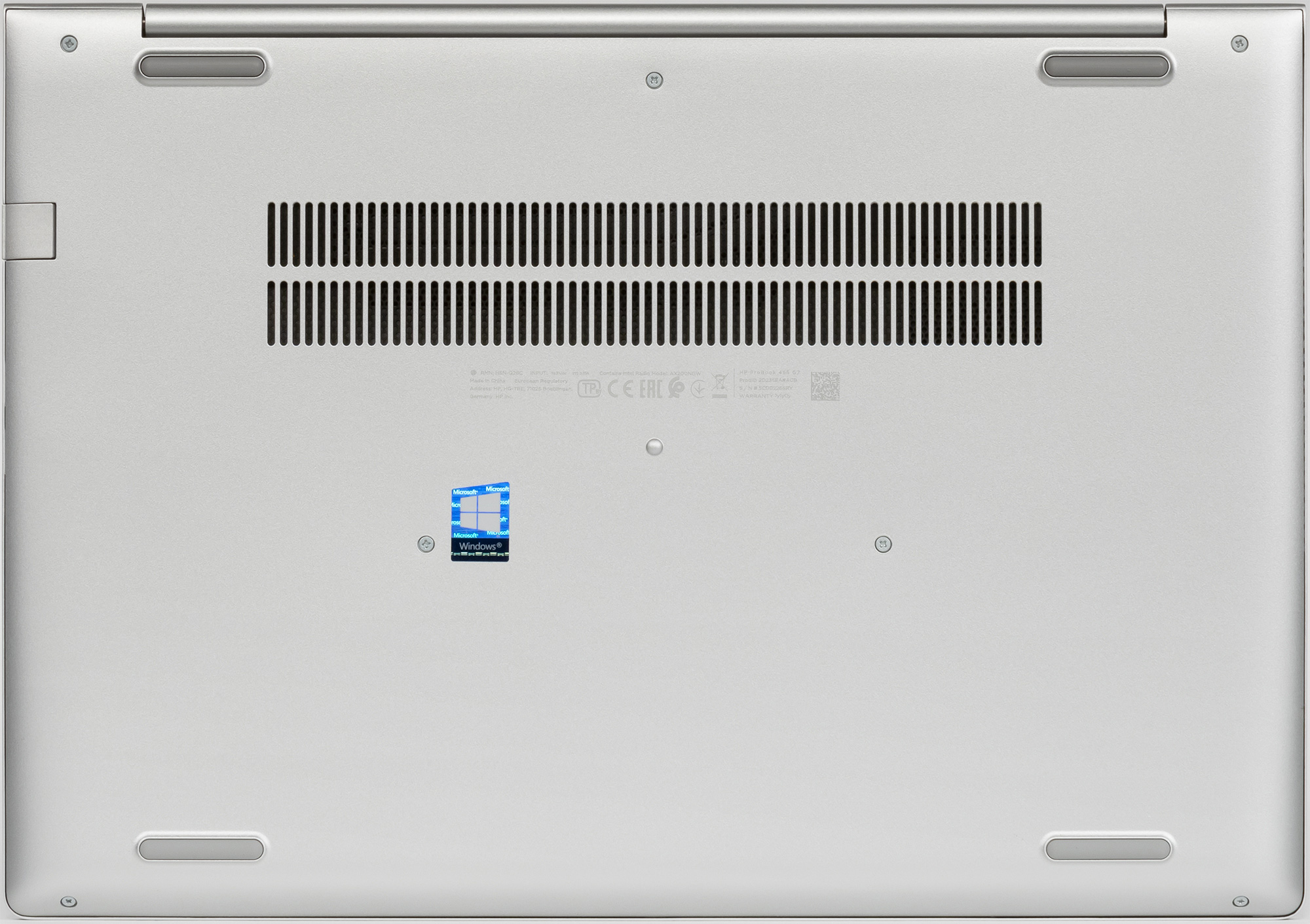 На основании ноутбука можно выделить только вентиляционную решетку и четыре резиновые ножки.