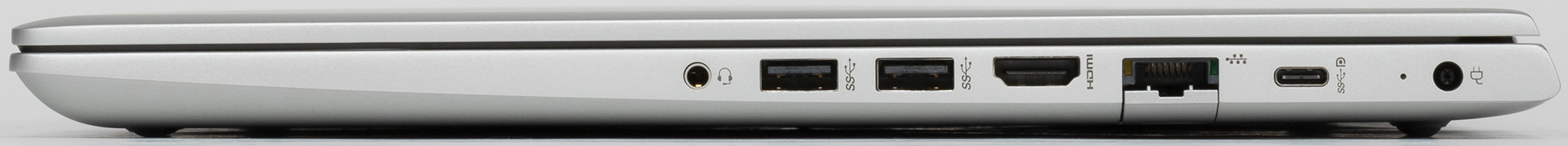 Справа размещены разъем для наушников и микрофона, два порта USB 3.1 Gen1 Type-A, видеовыход HDMI, сетевая розетка, порт USB 3.1 Gen1 Type-С и коннектор адаптера питания с индикатором.