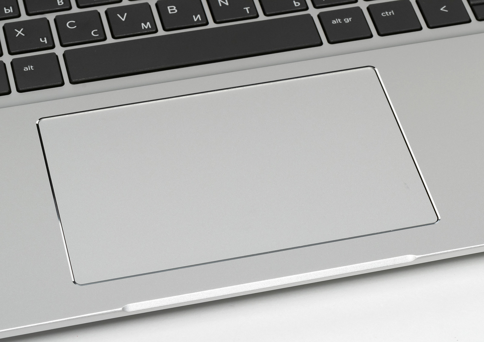 Двухкнопочный кликпад (сенсорная панель) размерами 115×73 мм ничем особенным не выделяется, но выглядит приятно, благодаря хромированной фаске по краям.