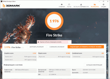 У данной модели ноутбука нет дискретной видеокарты, только встроенное в процессор графическое ядро, но его мы тоже протестировали на предмет температурного режима работы, использовав для этого 20 циклов теста Fire Strike из пакета 3DMark.