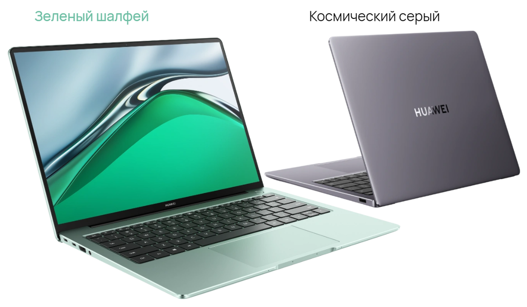 Новый Huawei MateBook 14s выпускается в двух цветовых гаммах с оригинальными названиями «Зеленый шалфей» и «Космический серый».