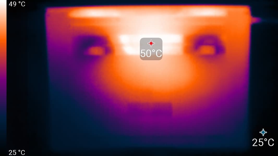 Ниже приведены термоснимки, полученные после долговременной работы ноутбука под максимальной нагрузкой на CPU и GPU (профиль Производительность):