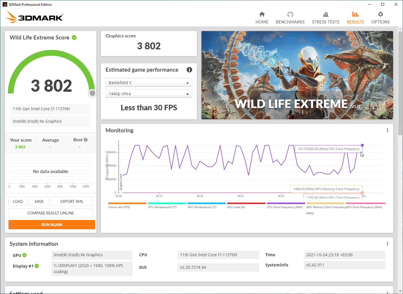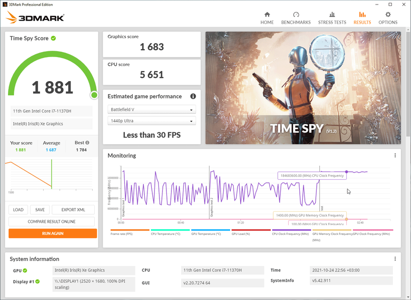 Кроме этого, мы приводим результаты тестирования встроенного в процессор графического ядра Intel Iris Xe в 3D-бенчмарке 3DMark и паре игр.