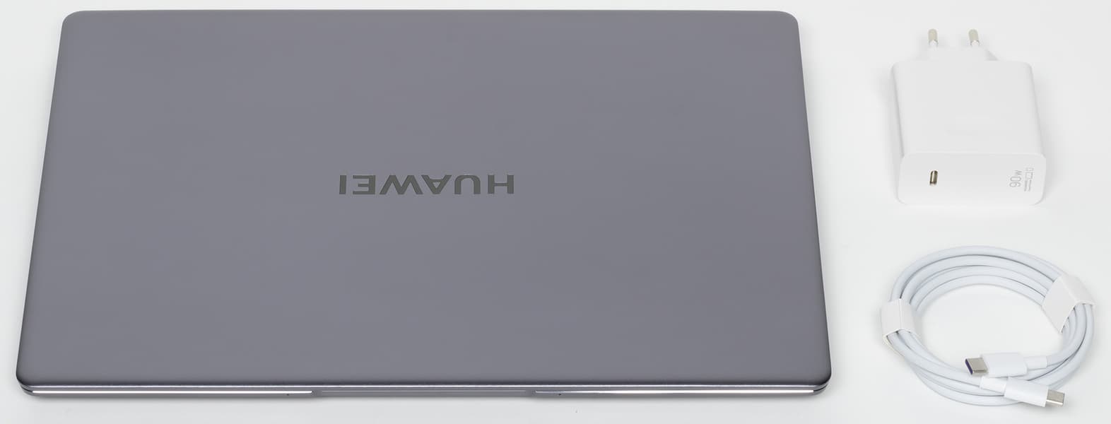 Оригинальная коробка ноутбука нам по каким-то причинам не досталась, но, впрочем, комплект традиционно для Huawei включает только адаптер питания с отдельным кабелем USB Type-C (гарантийный талон, наверное, остался в той самой коробке).