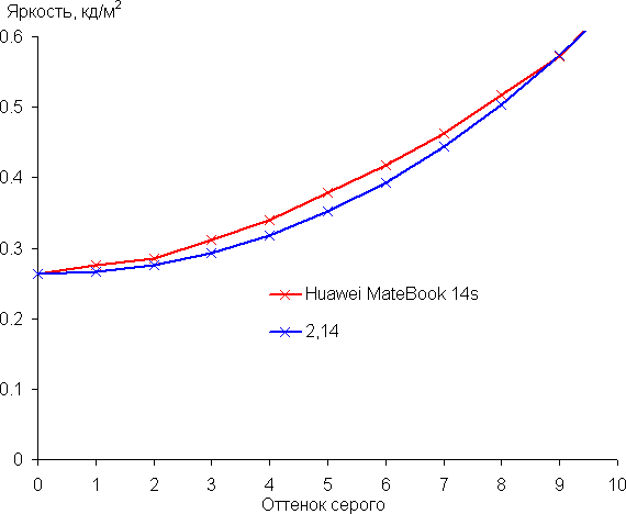 Далее мы измерили яркость 256 оттенков серого (от 0, 0, 0 до 255, 255, 255). График ниже показывает прирост (не абсолютное значение!) яркости между соседними полутонами: