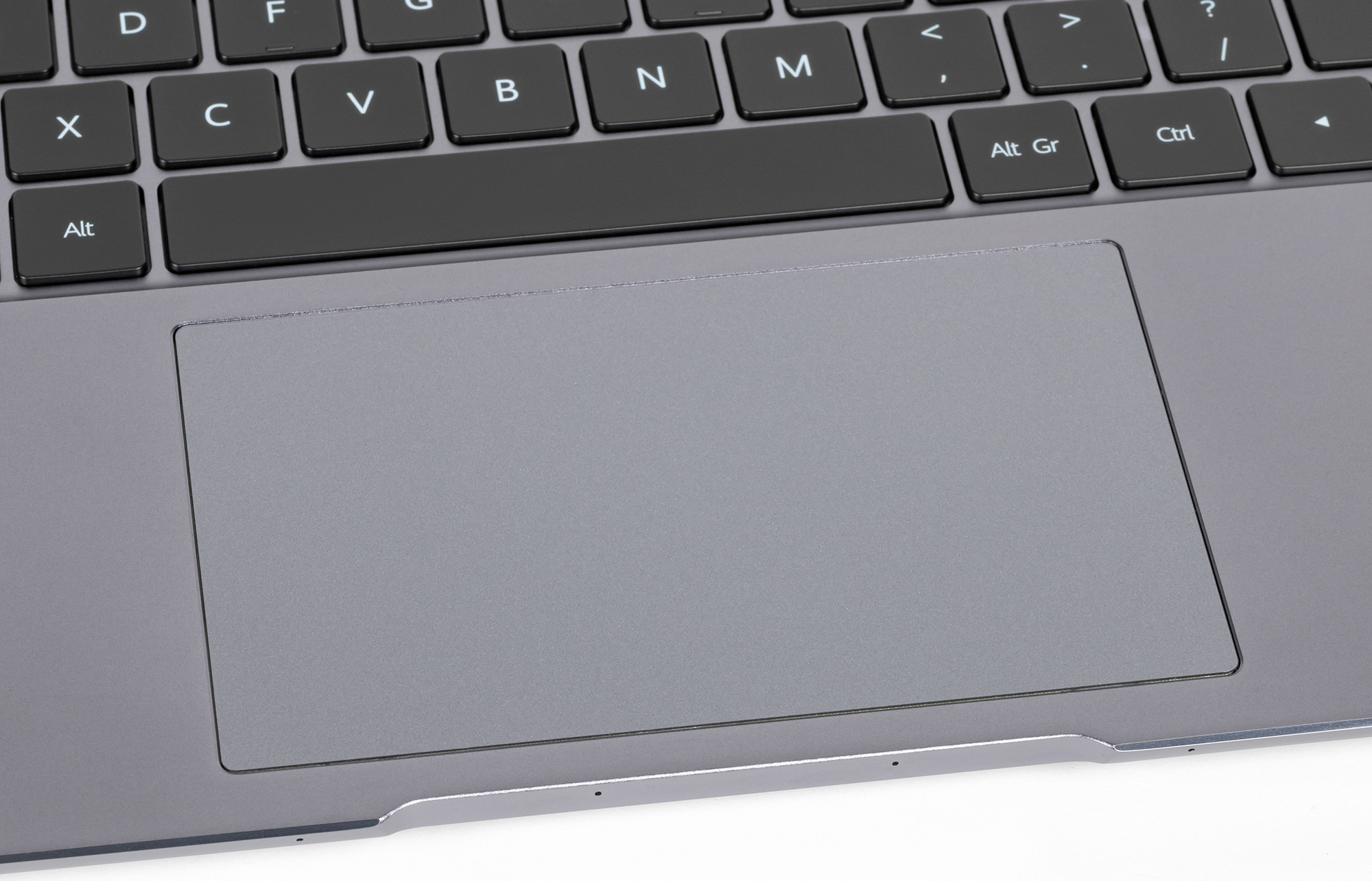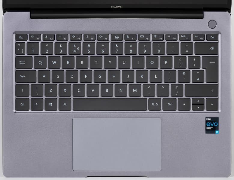 Клавиатура нового Huawei MateBook 14s не претерпела серьезных изменений в сравнении с клавиатурой предшественника. В нашей версии русской раскладки пока нет, но, скорее всего, она также будет нанесена белой краской. Блока цифровых клавиш здесь по понятной причине нет.