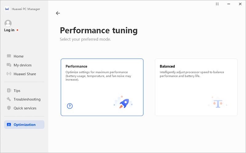 А вот режимов работы ультрабука, доступных в фирменной утилите Huawei PC Manager, по прежнему два: производительный и сбалансированный.