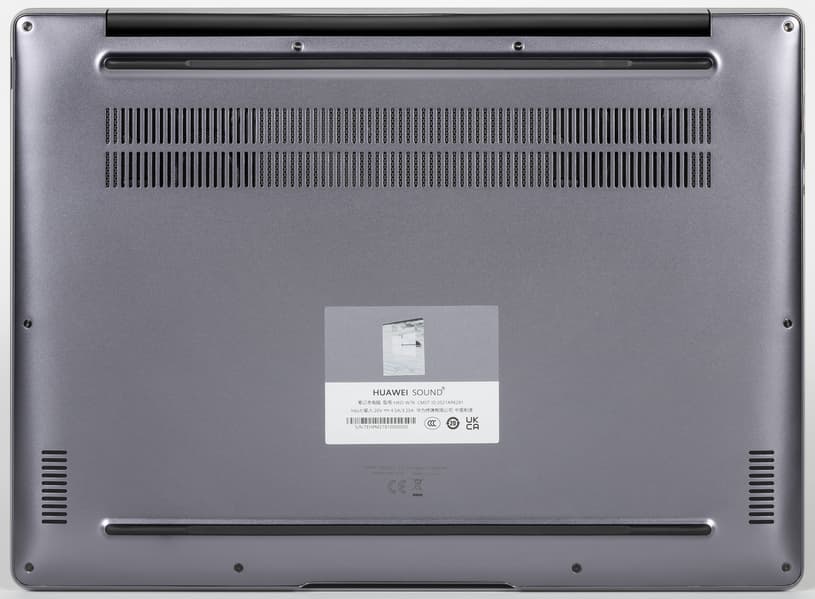 По большому счету, корпус здесь такой же, как у MateBook 14 2021, только вентиляционная решетка на основании ноутбука проходит не одной полосой, а сдвоенной.