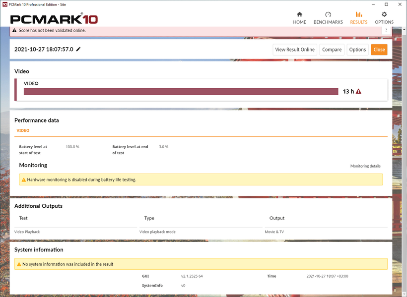 Мы проводили тесты автономности Huawei MateBook 14s с помощью пакета PCMark’10 при яркости экрана 100 кд/м² (40% по шкале яркости). Частота дисплея составляла 90 Гц, сеть и звук не отключались. Посмотрим на результаты.