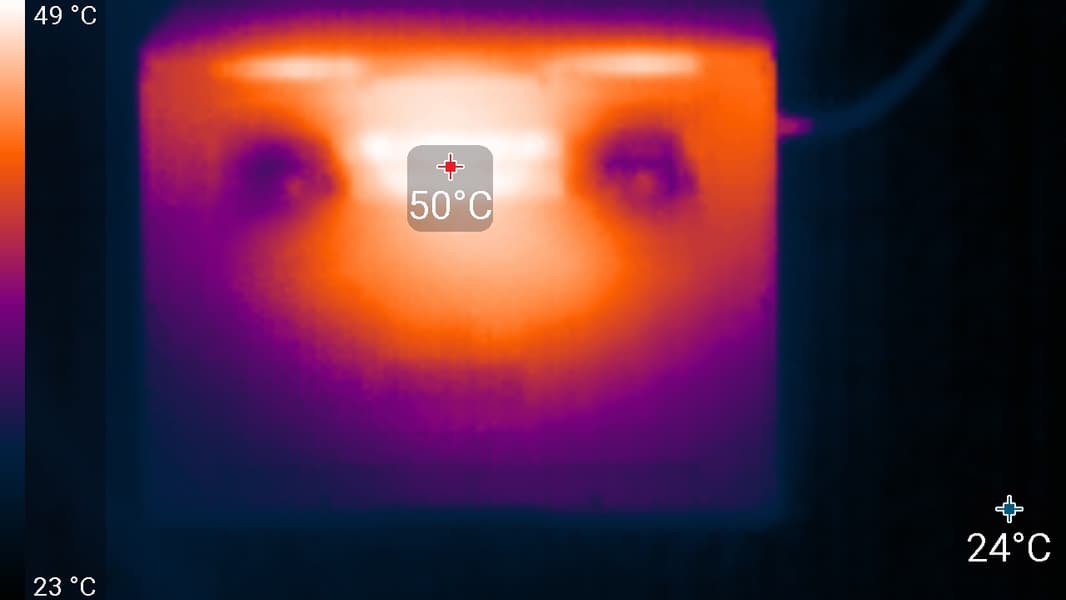 Ниже приведены термоснимки, полученные после долговременной работы ноутбука под максимальной нагрузкой на CPU и GPU (профиль Производительность):