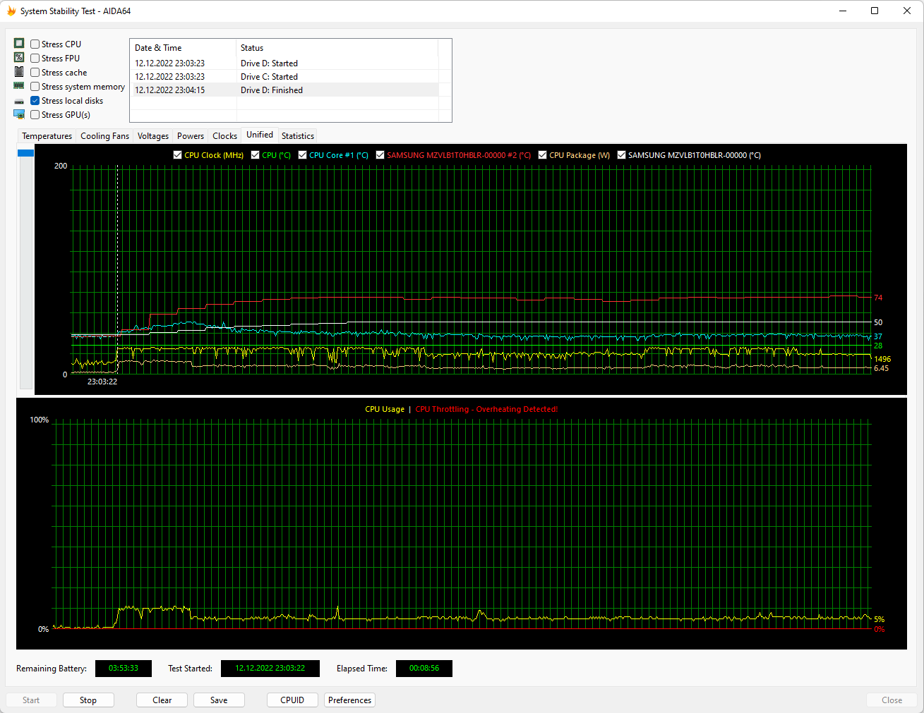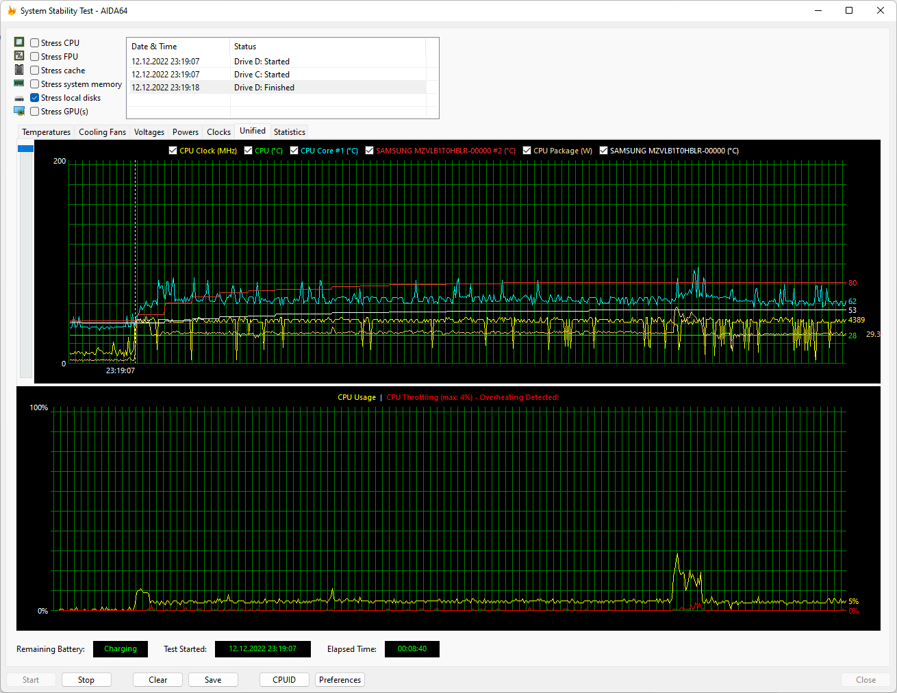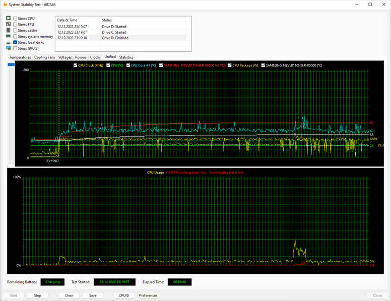 Теперь посмотрим, как поведет себя Huawei MateBook 14s (HKF-X) в стресс-тесте при работе от аккумулятора.