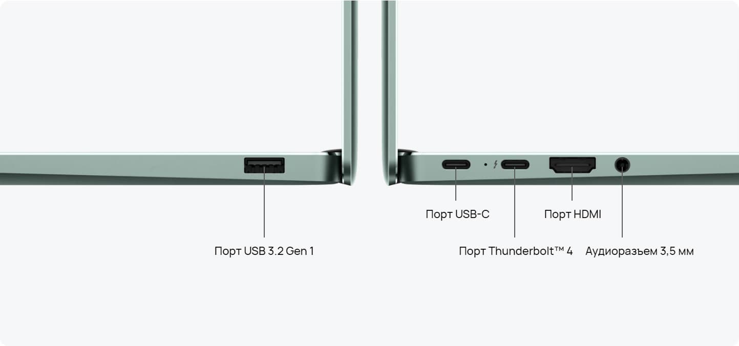 | Интерфейсы и порты | USB | 1×Thunderbolt 4/USB-С 3.2 Gen2, поддержка передачи данных (макс. 40 Гбит/с), зарядки и DisplayPort 1×USB-С 3.2 Gen1, поддержка передачи данных, зарядки и DisplayPort 1×USB-A 3.2 Gen1 |