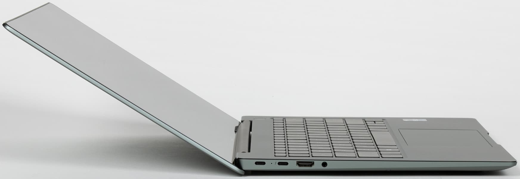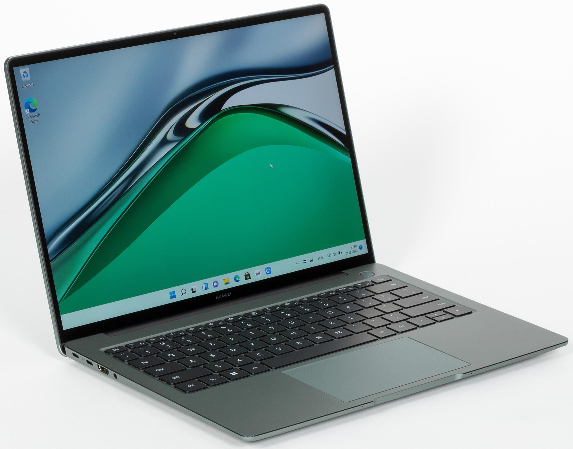 Как и в прошлом году, Huawei MateBook 14s предлагается покупателю в двух цветовых гаммах с оригинальными названиями «Зеленый шалфей» и «Космический серый». У нас на тестах наконец-то первый вариант расцветки, который, на наш взгляд, выглядит более современно в таком лаконичном дизайне.