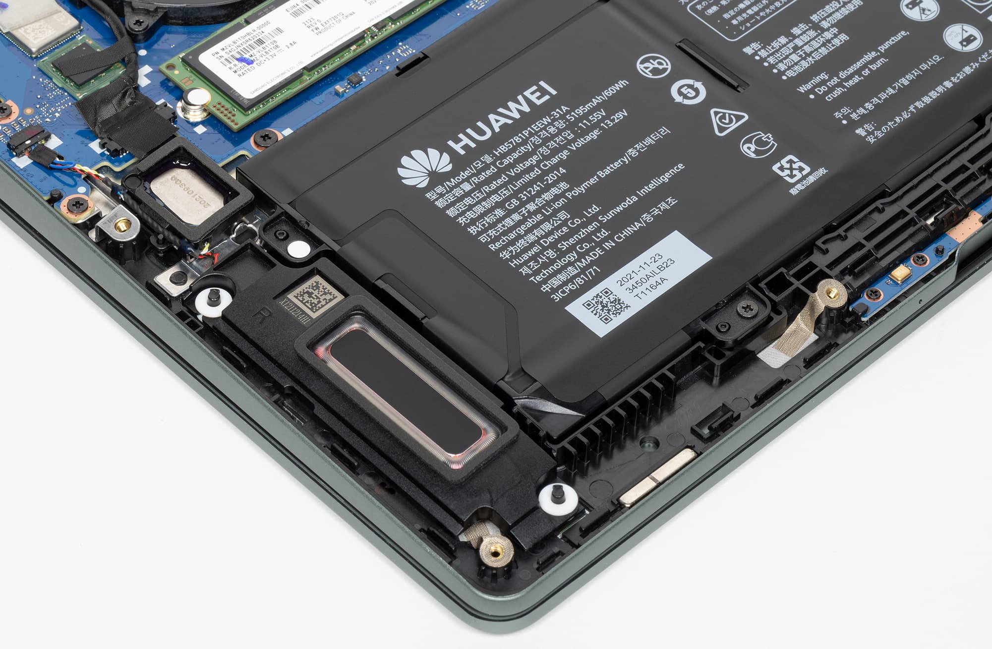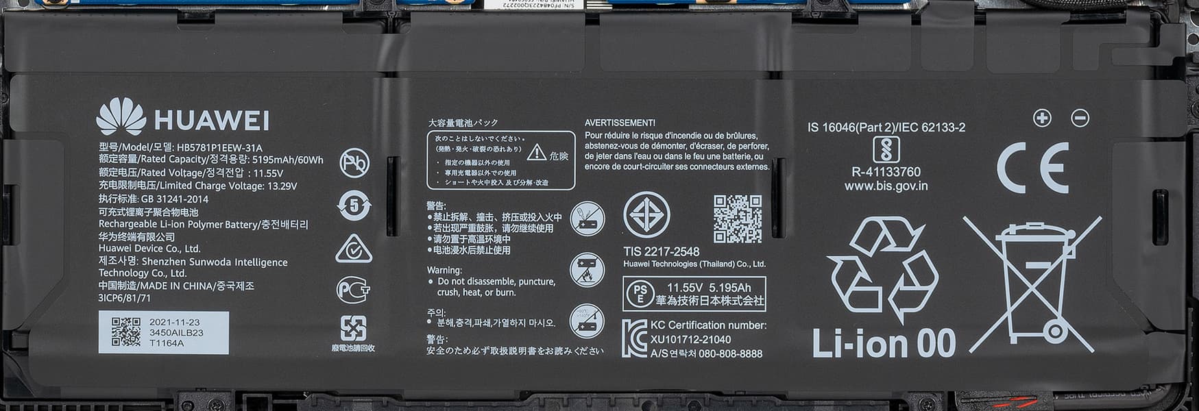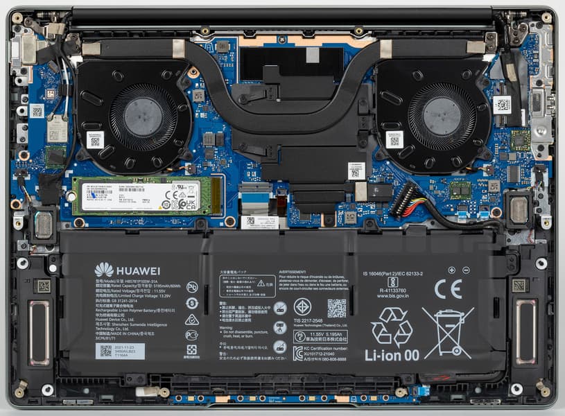 Аккумулятор в Huawei MateBook 14s образца 2022 года остался емкостью 60 Вт·ч (5195 мА·ч). По всей видимости, в этих габаритах более емкий аккумулятор уже не уместить (либо это будет слишком дорого).