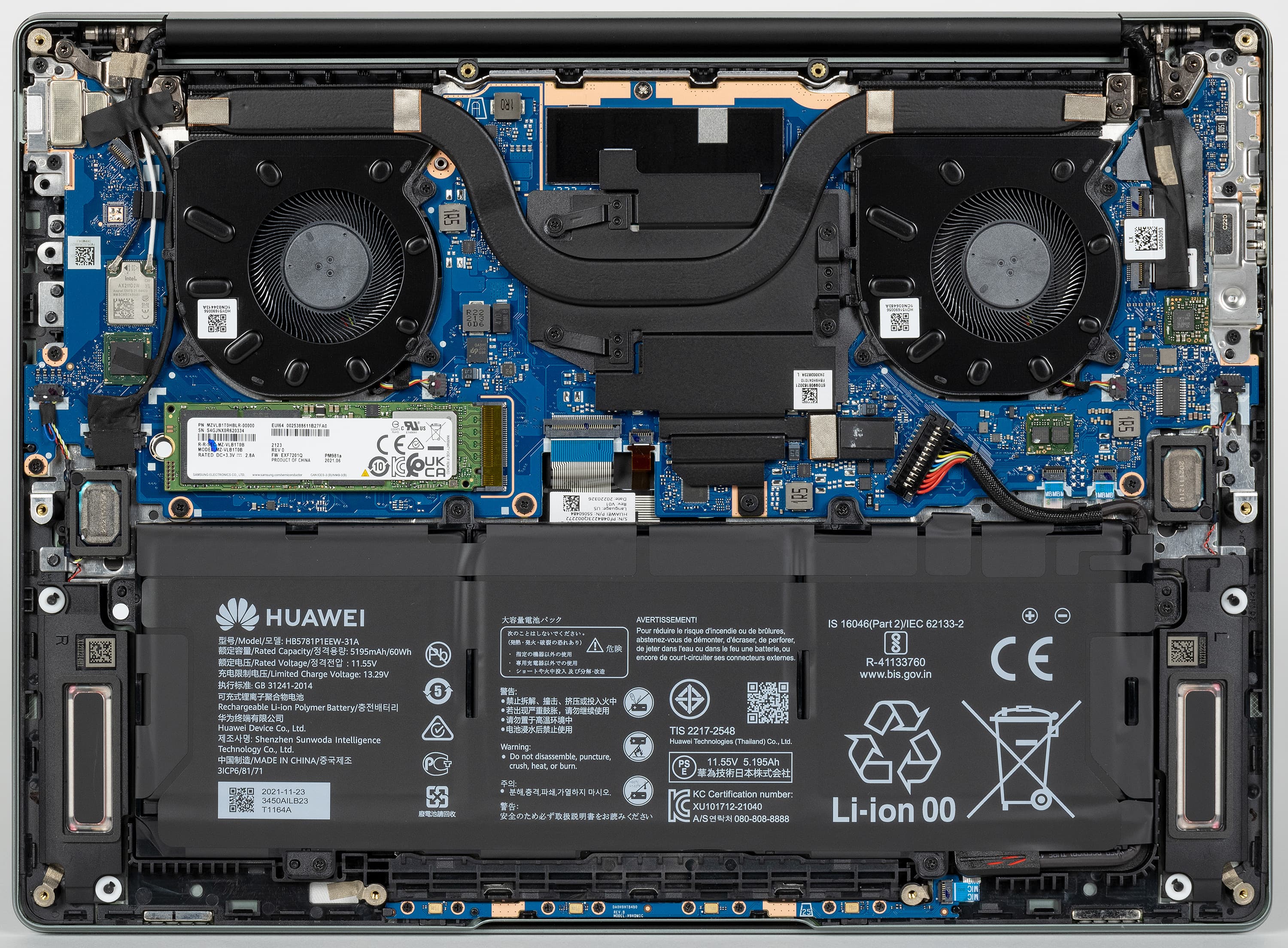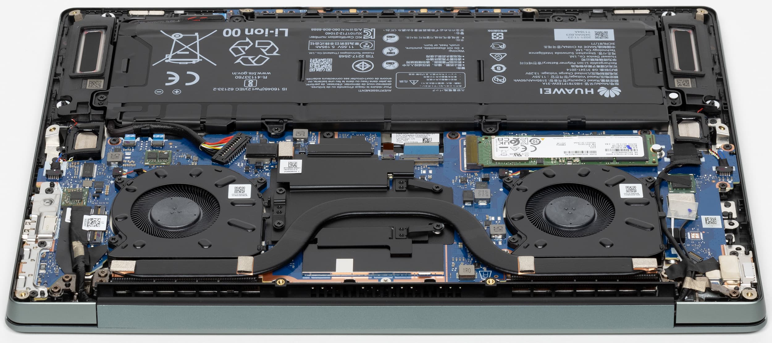 Радиаторы и фирменные вентиляторы Huawei Shark Fin с тончайшими лопастями S-образной формы не претерпели изменений.