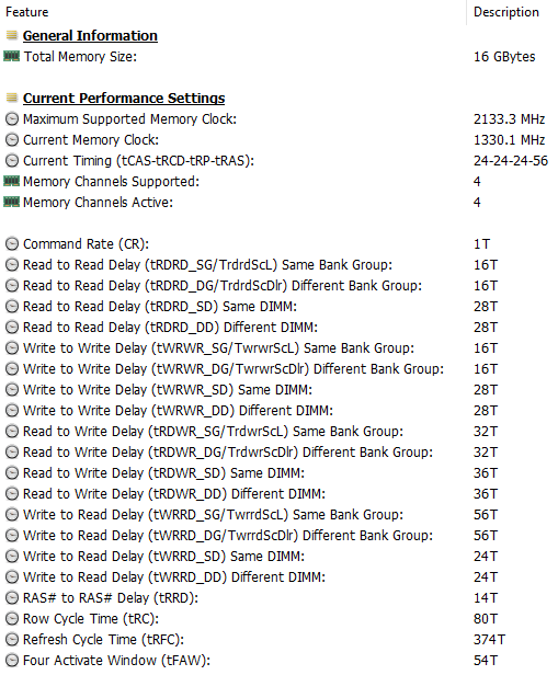 | Оперативная память | 16 ГБ LPDDR4x-4266 (распаяна на плате), двухканальный режим, тайминги 32-34-34-79 CR1 | |