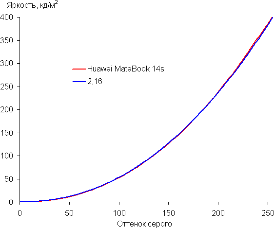 При питании от сети или от батареи и при ручном управлении яркостью ее максимальное значение составило 400 кд/м² (в центре экрана на белом фоне). Максимальная яркость довольно высокая, поэтому за ноутбуком как-то можно будет работать на улице ясным днем, если расположиться хотя бы не под прямыми солнечными лучами.