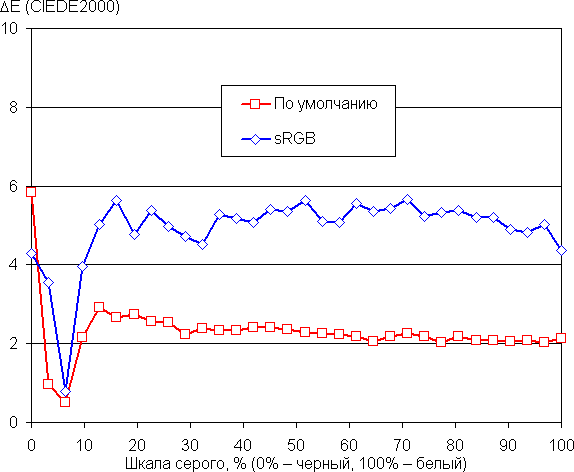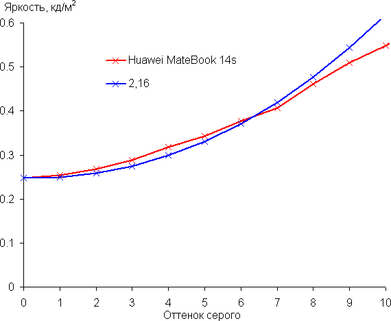 Далее мы измерили яркость 256 оттенков серого (от 0, 0, 0 до 255, 255, 255). График ниже показывает прирост (не абсолютное значение!) яркости между соседними полутонами: