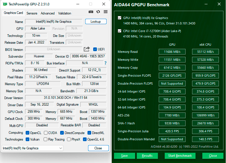 | Тест | Референсный результат (Соге i5-9600K) | Huawei MateBook 14s HKF-X (Соге i7-12700H) | Huawei MateBook 14s HKD-W76 (Соге i7-11370H) |