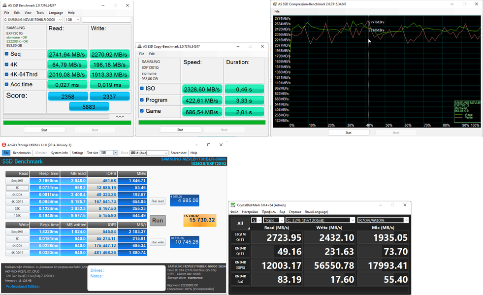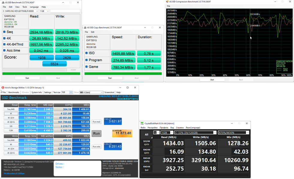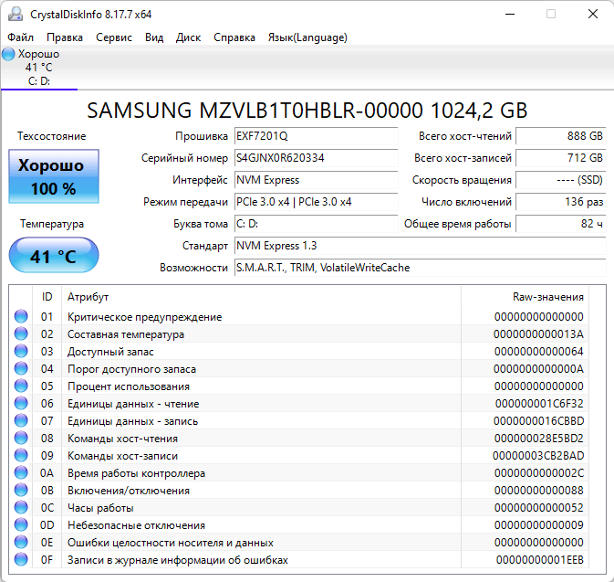 | Накопитель | 1 × SSD 1 ТБ (Samsung MZVLB1T0HBLR), M.2 2280, NVMe, PCIe 3.0 x4 | |