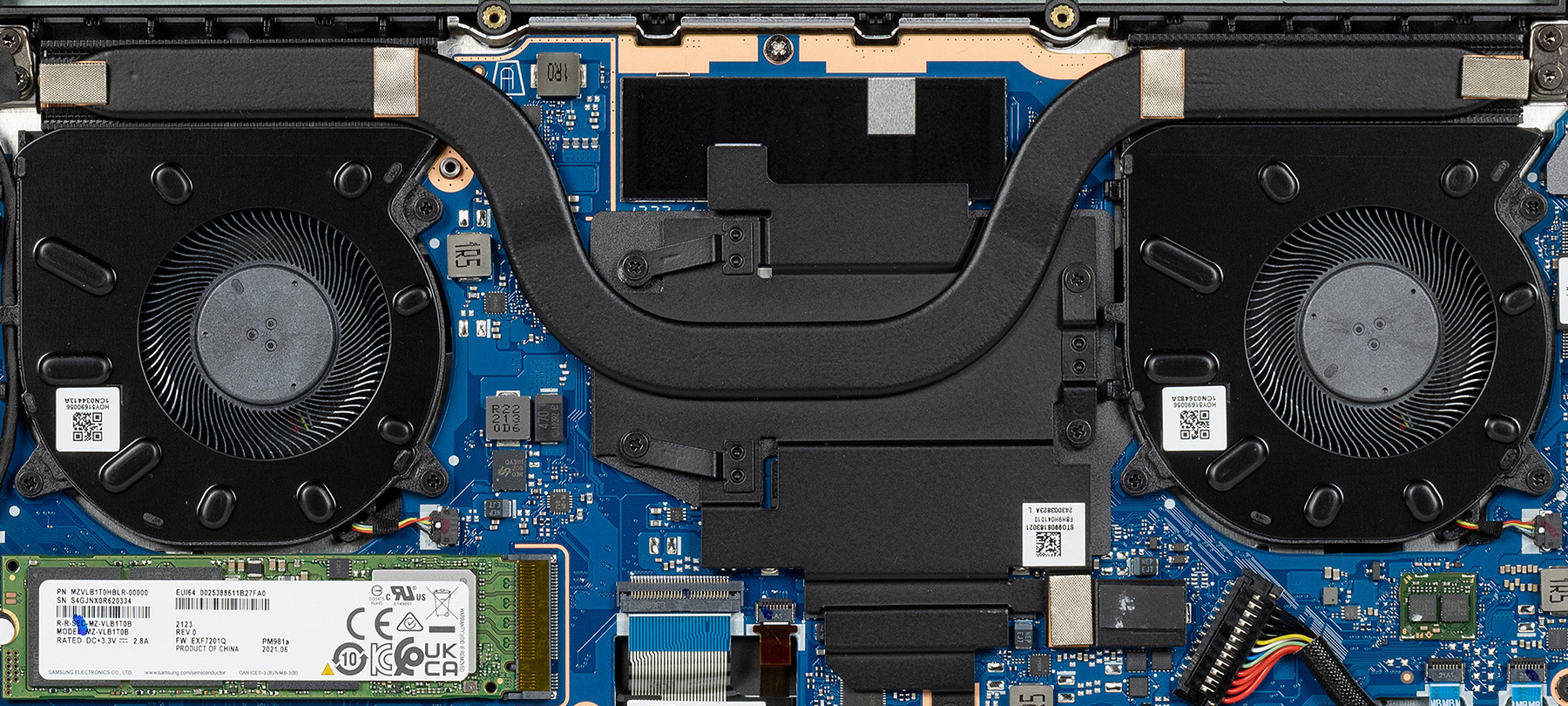 В системе охлаждения теперь применена одна тепловая трубка (скорее всего, диаметром 8 мм), тогда как у модели 2021 года тепловых трубок две.