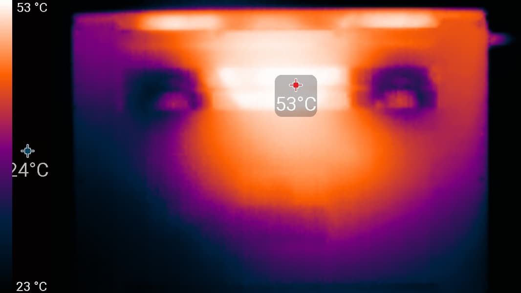 Ниже приведены термоснимки, полученные после долговременной работы ноутбука под максимальной нагрузкой на CPU и GPU (профиль Производительность):