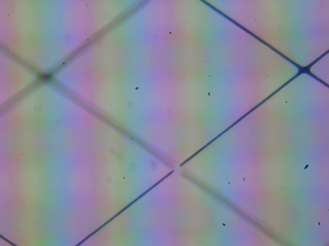 Фокусировка выше дает изображение сетки электродов, с помощью которой определяется прикосновение пальцев.