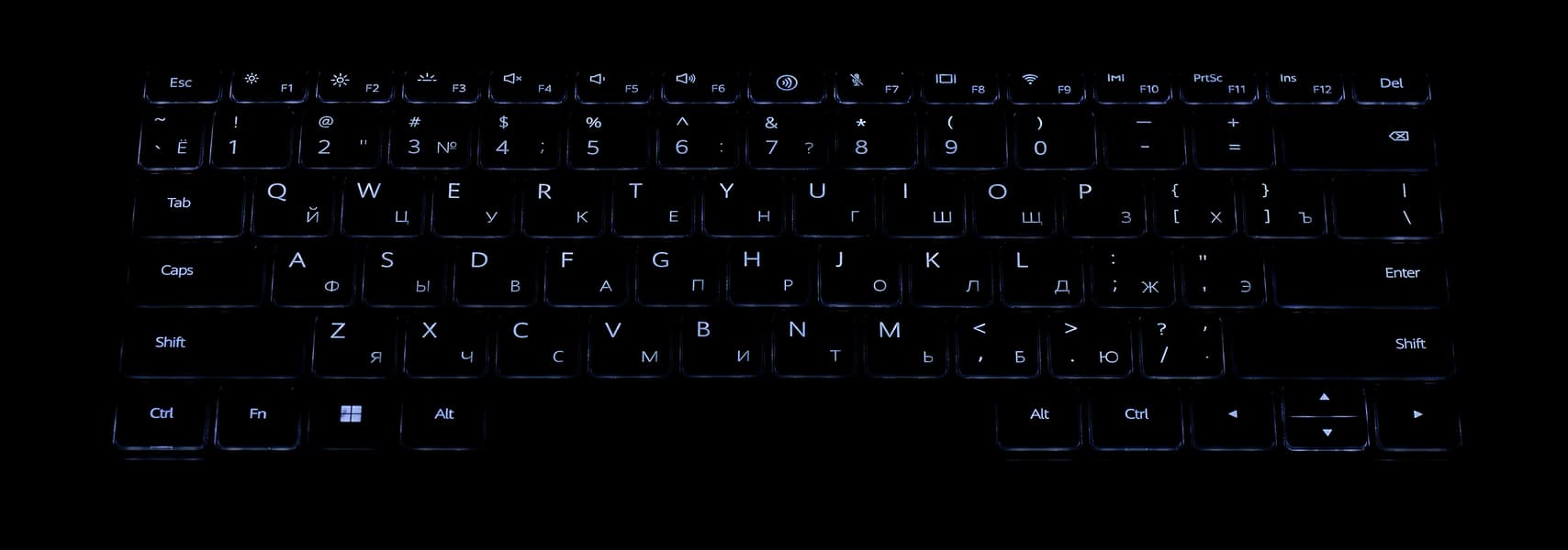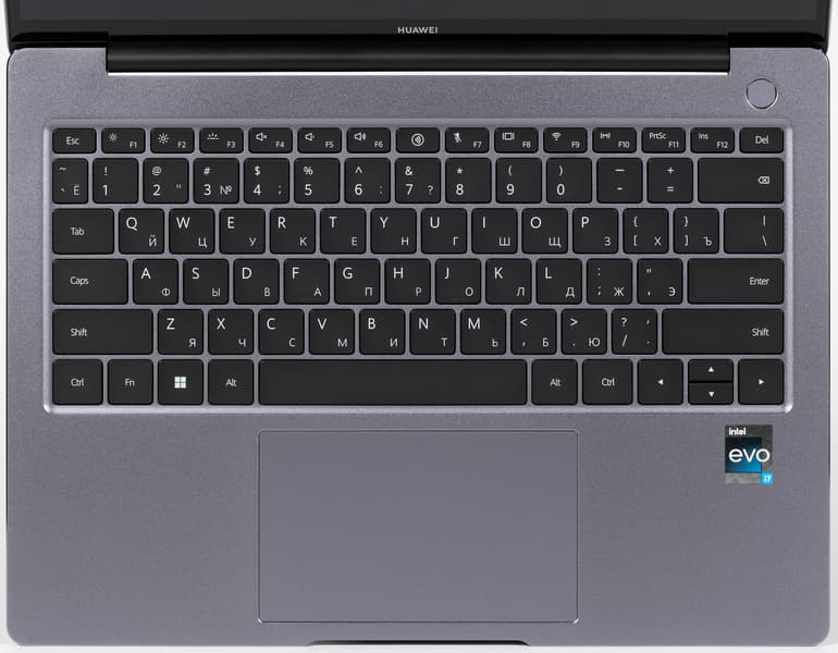 Все наши попытки найти отличия в устройствах ввода Huawei MateBook 14s 2023 в сравнении с моделью 2022 года оказались тщетными. В ноутбуке используется всё та же клавиатура мембранного типа с английской и русской раскладками.