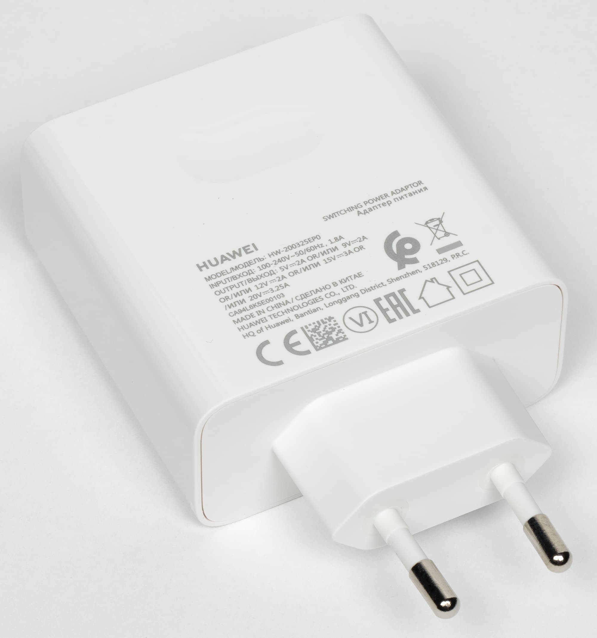 Мощность комплектного адаптера питания ноутбука составляет 65 ватт (модель HW-200325EP0).