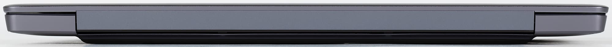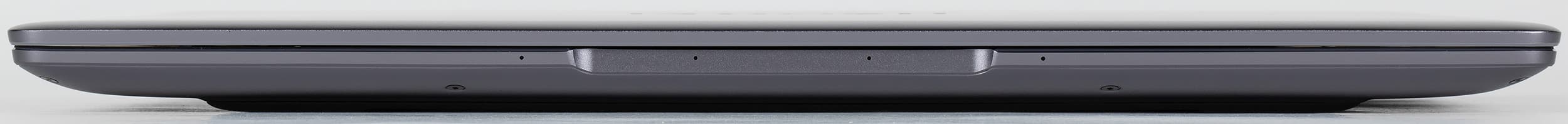 Здесь также не обнаружено никаких изменений, как нет их и на сужающемся переднем торце корпуса ноутбука. Зато на нем есть четыре микрофона аудиосистемы и выемка для пальцев.