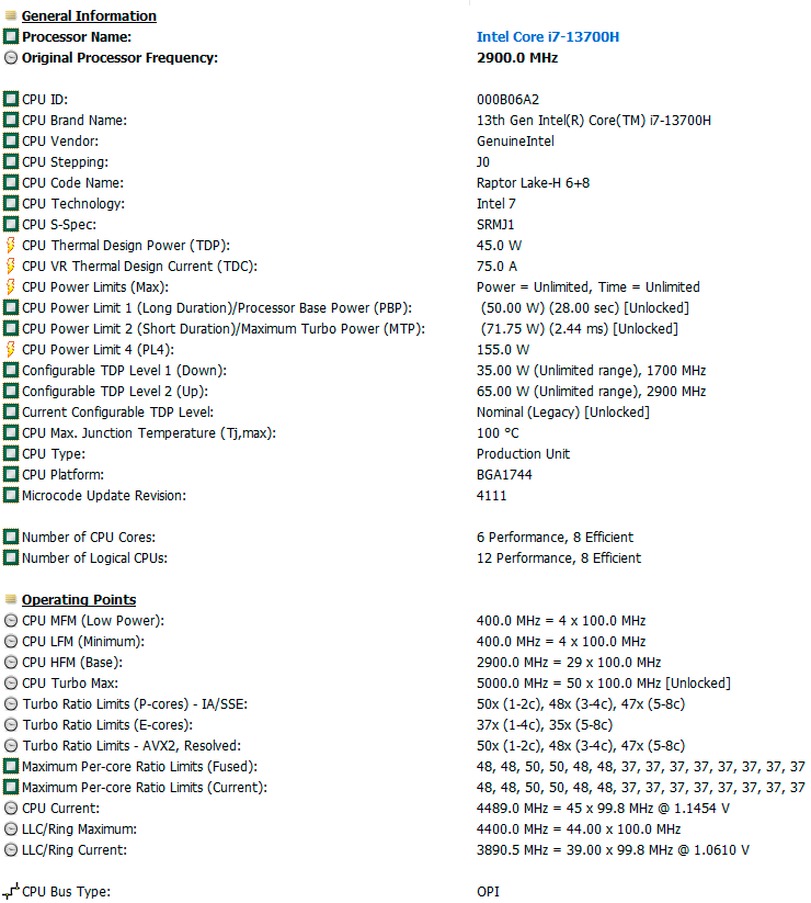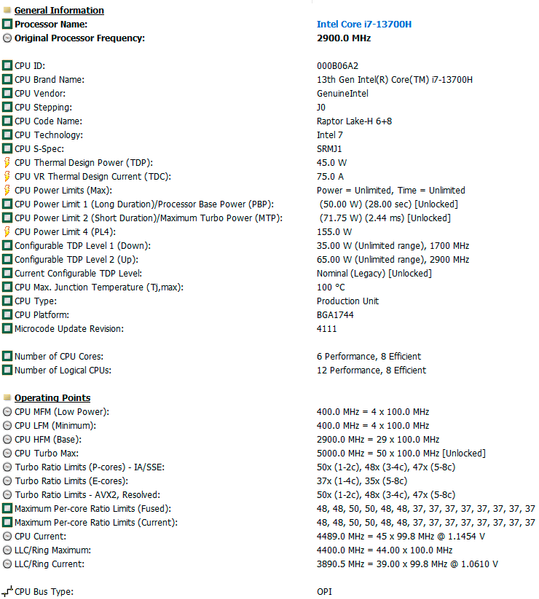 | Процессор | Intel Core i7-13700H (Intel 7, Raptor Lake-H, 6 P-ядер/12 потоков + 8 E-ядер, до 5,0 ГГц, L3-кэш 24 МБ, TDP 35—115 Вт) | |