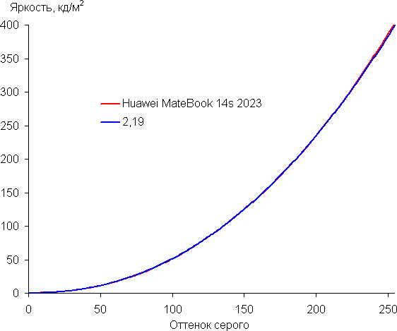 При питании от сети или от батареи и при ручном управлении яркостью ее максимальное значение составило 400 кд/м² (в центре экрана на белом фоне). Максимальная яркость довольно высокая, поэтому за ноутбуком как-то можно будет работать на улице ясным днем, если расположиться хотя бы не под прямыми солнечными лучами.